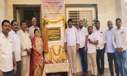ఆకాంక్ష న్యూస్ - హైదరాబాద్ / హన్మకొండ జిల్లా : ;శ్రీ రామకృష్ణ సేవా సమితి హనుమకొండ ప్రాంగణంలో క్రెడాయ్ వరంగల్ వారి ఆర్థిక సౌజన్యంతో ఏర్పరిచిన 10 కిలో వాట్స్ సోలార్ ప్లాంట్ ను హన్మకొండ స్తానిక శాసన సబ్యులు నాయిని రాజేందర్ రెడ్డి సతీమణి నాయిని నీలిమ ప్రారంభించారు. శ్రీ రామకృష్ణ సేవా సమితి లాంటి ధార్మిక సేవా కార్యక్రమాలు నిర్వహిస్తున్న సంస్థకు సోలార్ ప్లాంట్ ను అందించడం పట్ల నాయిని నీలిమ రాజేందర్ రెడ్డి క్రెడాయ్ సంస్థను అభినందించారు. శ్రీ రామకృష్ణ సేవాసమితి వారు మరిన్ని ధార్మిక కార్యక్రమాలను చేపట్టాలని ముఖ్యంగా కాజీపేట హనుమకొండ వరంగల్ పట్టణాలలో ఉన్న విద్యార్థులకు మంచి మార్గదర్శకత్వాన్ని నైతిక విలువలను అందించాలని కోరారు, దీనికిగాను తన వంతు సహాయ సహకారాలను ఈ సేవా సమితికి అందిస్తామని తెలిపారు. క్రెడాయ్ వరంగల్ అధ్యక్షులు ఎర్రబెల్లి తిరుపతి రెడ్డి మాట్లాడుతూ శ్రీ రామకృష్ణ సేవాసమితి లాంటి ధార్మిక సంస్థకు ఆర్థిక సహకారం అందించడం తమకు ఎంతో సంతోషదాయకమని తెలియజేశారు. శ్రీ రామకృష్ణ సేవా సమితి లాంటి సామాజిక ఆధ్యాత్మిక సంస్థకు సహకరించడం మా క్రెడాయ్ వరంగల్ అదృష్టం అని అన్నారు.శ్రీ రామకృష్ణ సేవా సమితి అధ్యక్షులు శ్రీ కటంగూరి సత్యనారాయణ రెడ్డి మాట్లాడుతూ భగవాన్ శ్రీ రామకృష్ణ ధ్యాన మందిరంలో 10 కిలో వాట్స్ సోలార్ ప్లాంటును అందజేసినందుకు క్రెడాయ్ వరంగల్ సంస్థకు కృతజ్ఞతలు తెలియజేశారు.ఇంకా ఈ సమావేశంలో క్రెడాయ్ వరంగల్ ప్రధాన కార్యదర్శి మనోహర్, మాజీ అధ్యక్షులు చందుపట్ల సత్యనారాయణ రెడ్డి, ప్రతినిధులు లెక్కల రజనీకాంత్ రెడ్డి, ఏ. నాగరాజు, ఎ, వెంకట మల్లా రెడ్డి, గాదె రాజేందర్ రెడ్డి, వరంగల్ రెడ్డి సంఘం ప్రధాన కార్యదర్శి చాడ సురేష్ రెడ్డి, కొండా నాగరాజు, కె.శ్రీనివాస్ రెడ్డి, అడ్వకేట్ కొండం వెంకట్ రెడ్డి, సేవా సమితి ప్రతినిధులు జినుగు విష్ణువర్ధన్ రెడ్డి, శ్రీనివాస స్వామి, కెవి రావు, మూల తిరుపతి రెడ్డి, ధర్మకర్తలు జి. మధుసూదన్ రెడ్డి, ఎన్.వెంకట్రాం నర్సయ్య, చెంచారపు మధుసూదన్ రెడ్డి, సభ్యులు కేశవ రెడ్డి, కె.ప్రభాకర్ రాజు, కె.సూర్య, ఎం.నవీన్ రెడ్డి, అశోక్ రెడ్డి, సరోజనమ్మ, గోరంటల స్వరూప, చిదర అంజనీ దేవి, లక్ష్మి రావు, పార్వతి తదితరులు పాల్గొన్నారు.